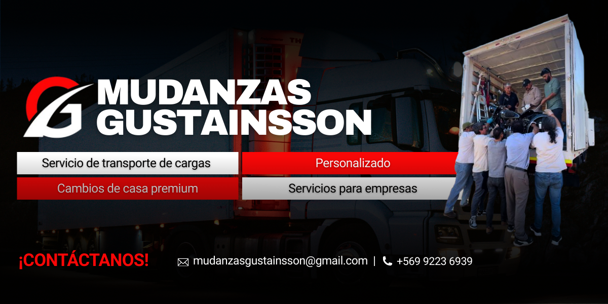 En Mudanzas Gustainsson hacemos que cada mudanza sea una experiencia fácil, segura y sin estrés. Con más de 30 años de trayectoria en el rubro y más de 3.600 mudanzas realizadas, sabemos exactamente lo que necesitas: comodidad total, confianza absoluta y atención a cada detalle. Nuestro equipo se encarga de embalar, transportar y ubicar todas tus pertenencias en tu nuevo hogar u oficina, para que tú solo disfrutes del cambio y comiences tu nueva etapa sin preocupaciones.